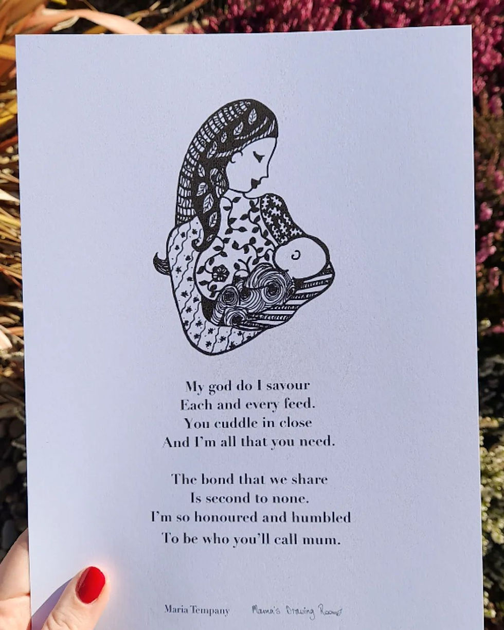 Created and personally printed by me in my Galway home, these motherhood wall art prints are designed for family homes, lactation rooms and as meaningful gifts for new mothers. Whether you are searching for breastfeeding wall art, a new baby gift or a heartfelt postpartum keepsake, these original illustrations honour the emotional journey of motherhood.